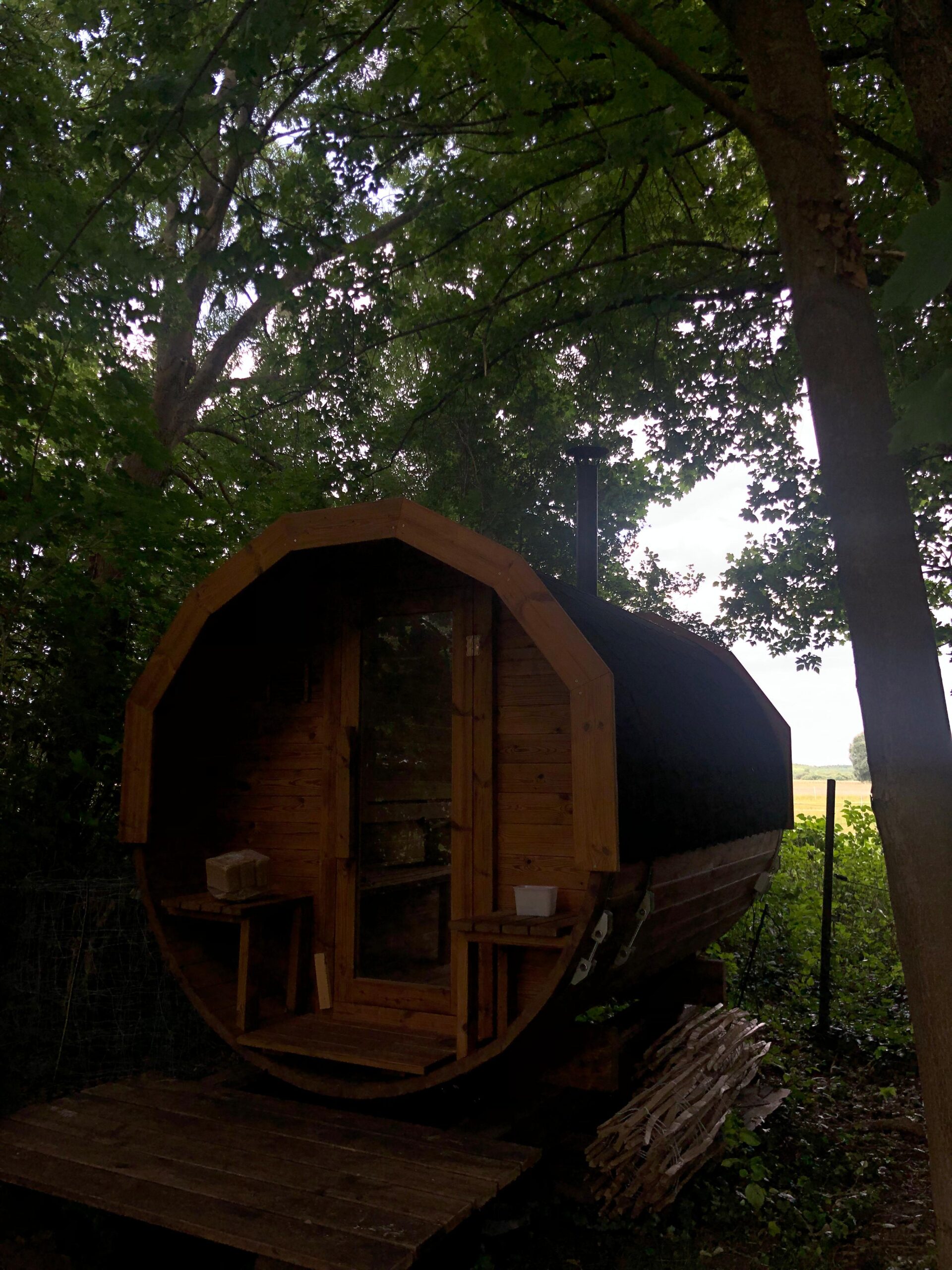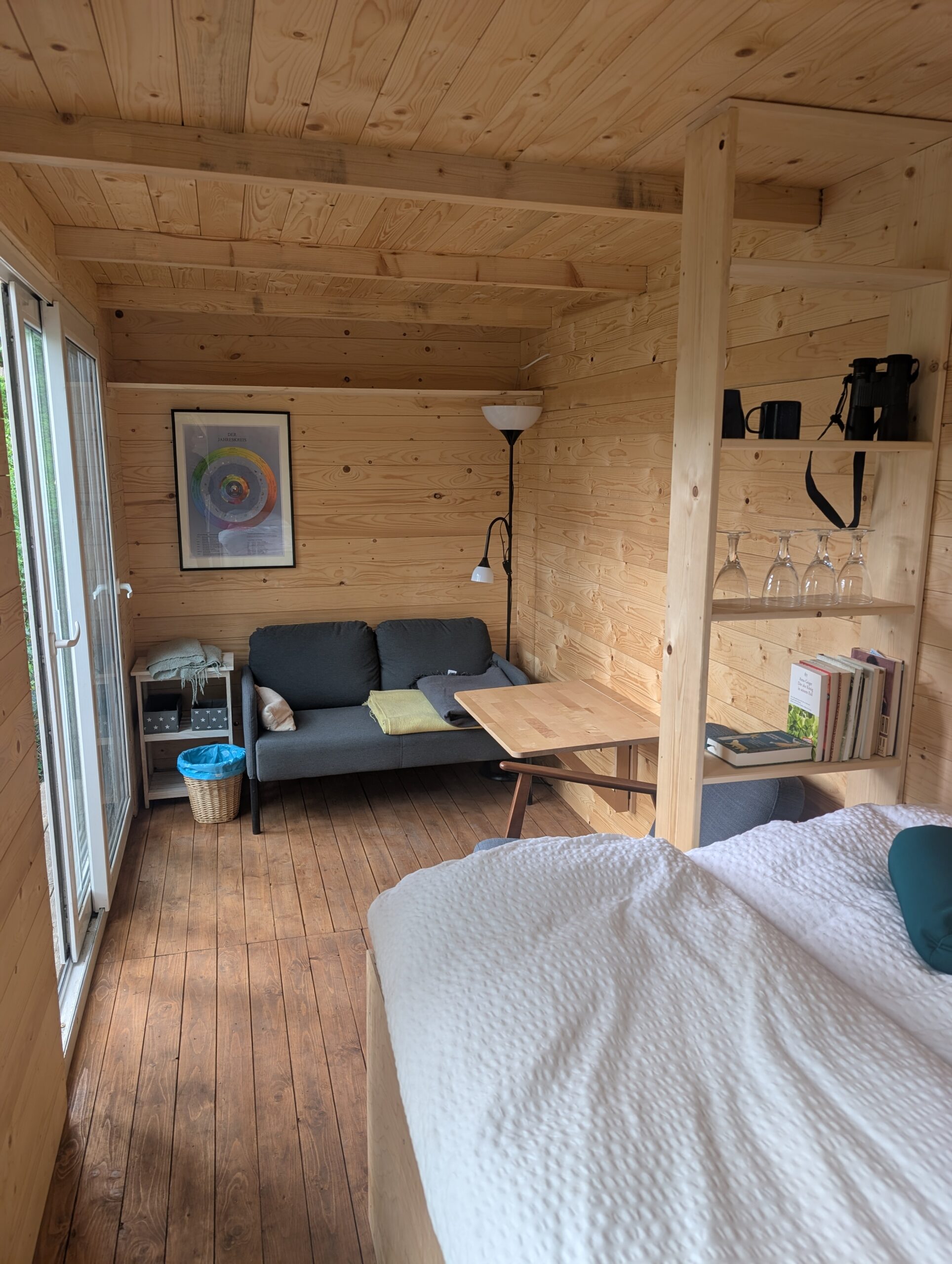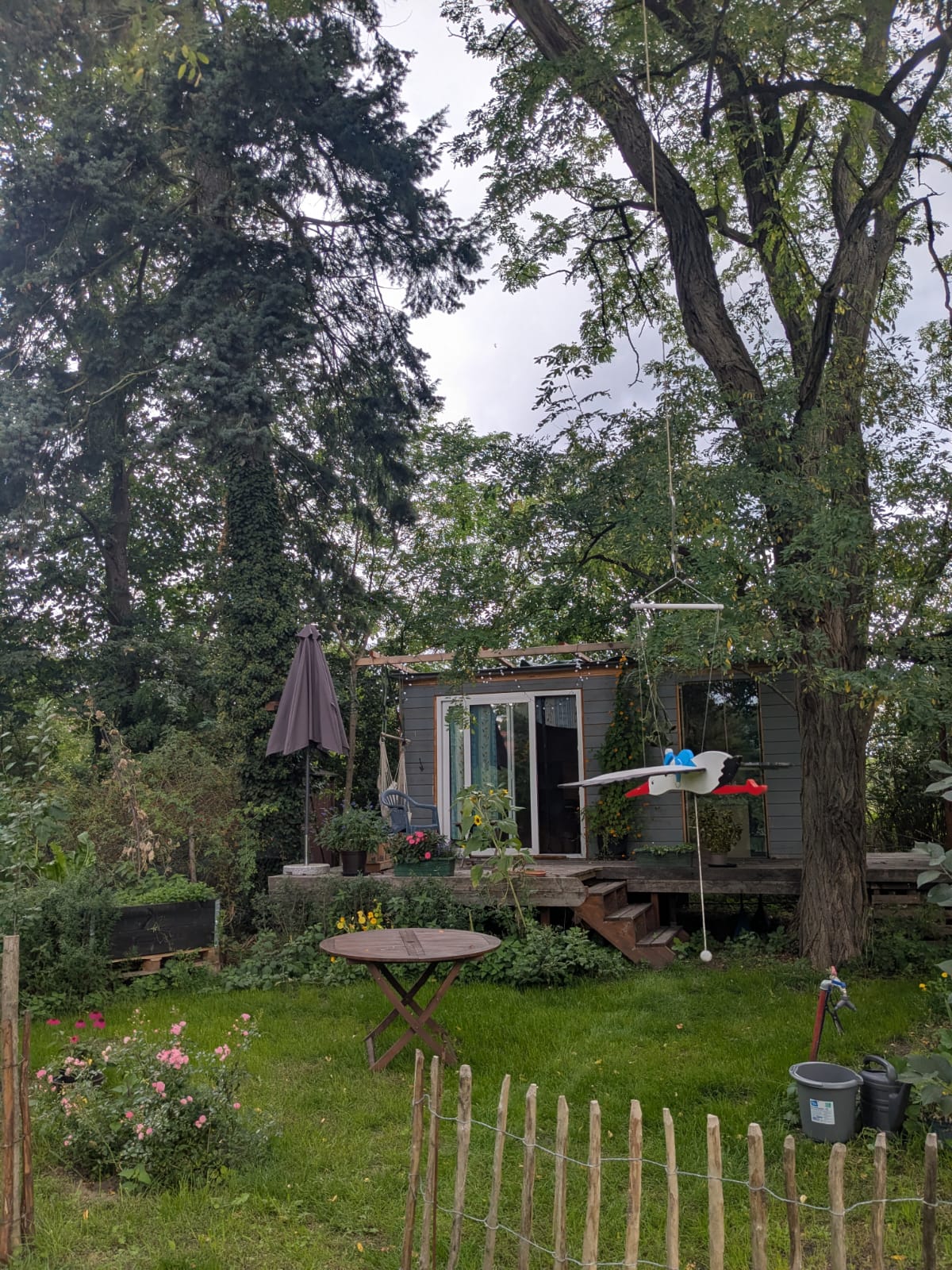 Ebenfalls im Garten befindet sich ein Tiny-House mit Schlafplätzen für 2 Personen, eigener Outdoor-Küche und Trockentoilette.